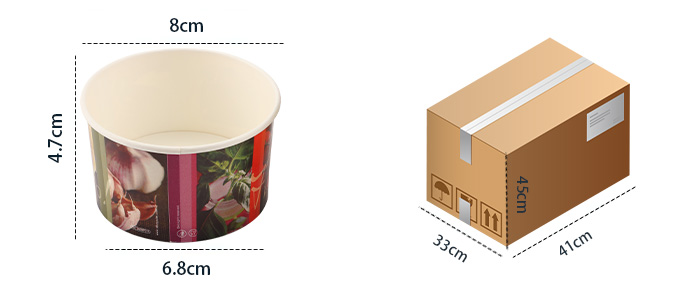 Vaso de papel de postre congelado de primera calidad con resistencia mejorada al aceite y al agua, lo que garantiza un rendimiento confiable durante el almacenamiento en frío a largo plazo. El recubrimiento de PE de doble cara retiene eficazmente la frescura y evita la condensación, preservando la rica textura de las golosinas congeladas para cada delicioso bocado.