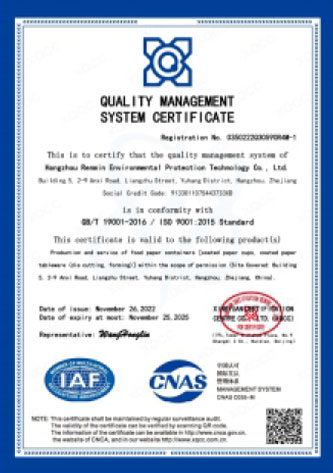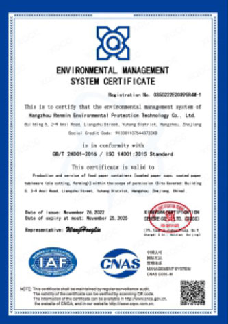 Hangzhou Renmin Eco-tech Co., Ltd., situada en la pintoresca ciudad de Hangzhou, Zhejiang, es una empresa líder en investigación, desarrollo y ventas de productos de papel. Fundada en 2004, nos especializamos en soluciones ecológicas como rollos de papel base, rollos de papel recubierto de PE, ventiladores de vasos de papel, ventiladores de cuencos y cajas de papel, hojas troqueladas, etc., para envases de alimentos y papel laminado con película de aluminio.